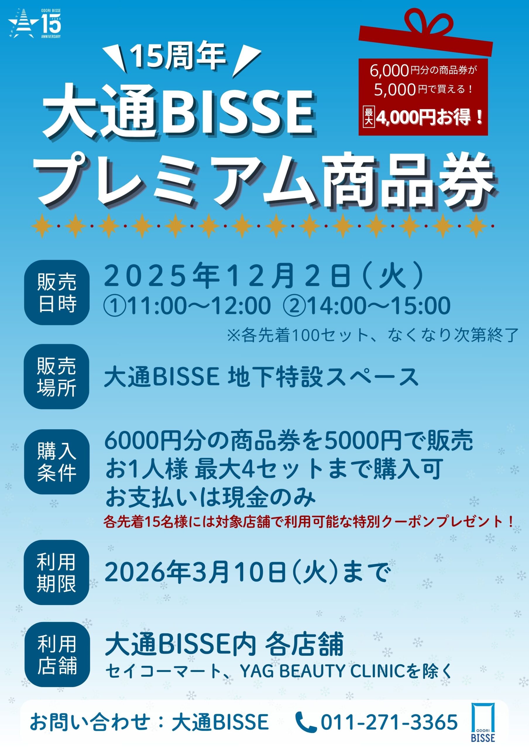 15周年記念イベント「大通BISSEプレミアム商品券」販売